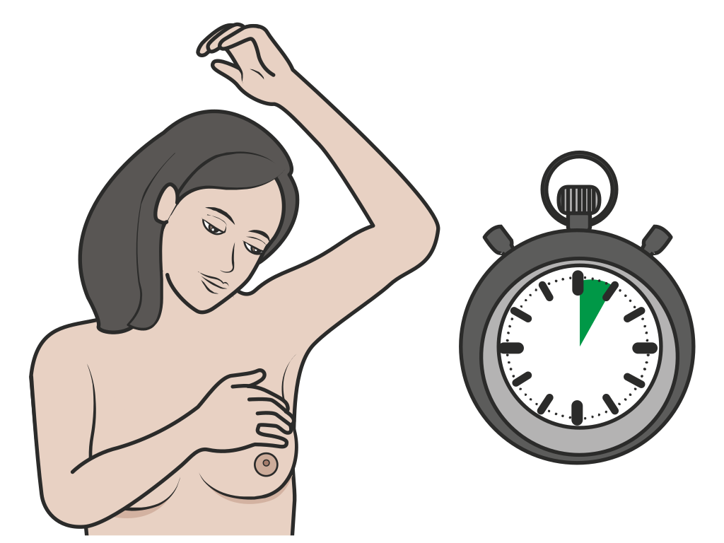 L’autopalpation mammaire doit être réalisée à partir de 25 ans, une fois par mois. Il faut faire l’auto-palpation doucement et prendre son temps. L’auto-palpation dure environ 5 minutes et ne doit pas faire mal.